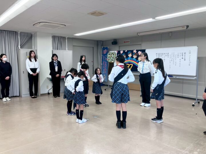 2025年度 入団・フライアップ式 シニア 2025.04.06 入団・フライアップ式を行いました。今年度はスカウト3名・リーダー1名の新入団を迎えてのスタート!スカウトのフライアップは3名、新大学1年生2名がリーダーになりました✨みなさん入団・フライアップおめでとうございます🎉進級式ではスカウト全員に新しい学年で頑張りたいことを発表してもらいました。今年度も楽しく活動しましょうね😍 式の後は部門別に新しいメンバーでパトロール作りやバッジブックの確認です。ブラウニーは見学者1名が来てくれて、みんなでシッタポンを作りました!